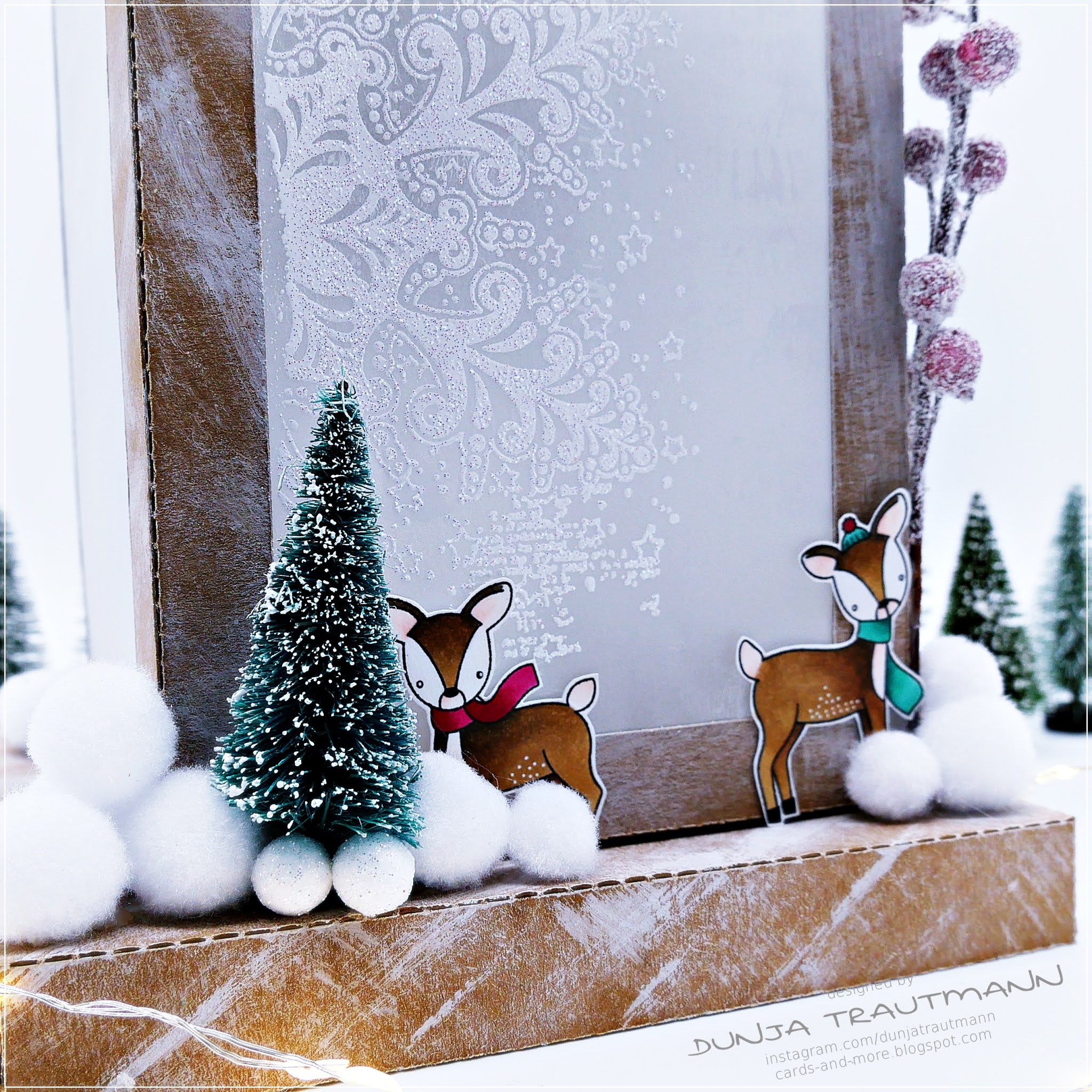 The windows are made of vellum and embossed, the cute deer take care that nobody turns off the light 🤭